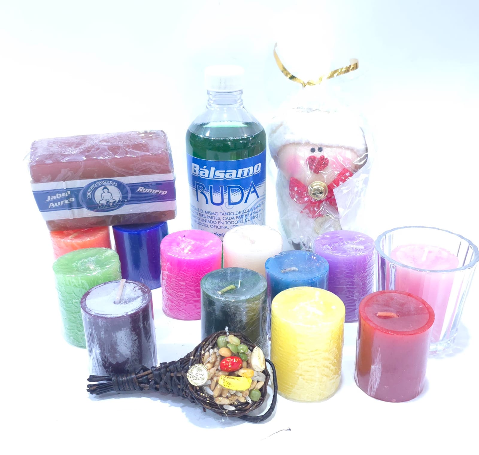 12 VELADORAS, 1 VASO, 1 JABON, 1 BORREGO Y 1 CUERNO